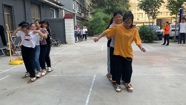 本次活动项目有协力竞走、五子棋、套圈游戏等。机关共有30余名职工参加。2点30分,随着分公司党总支书记的洪亮宣布,比赛准时开始。首先进行的是协力竞走,一项具有挑战性的项目。参赛选手四人一组,共穿一双板鞋,集体行进。随着一声哨响,竞赛马上进入白热化。选手团结协作,奋力争先,观众激情高涨,加油助威!领先的职工不骄不躁,动作协调,保持速度,落后的职工虽然出了一些状况,但始终不言放弃,全力追赶,参赛职工都体现出奋勇拼搏的精神。最终以用时长短决出了冠亚军。