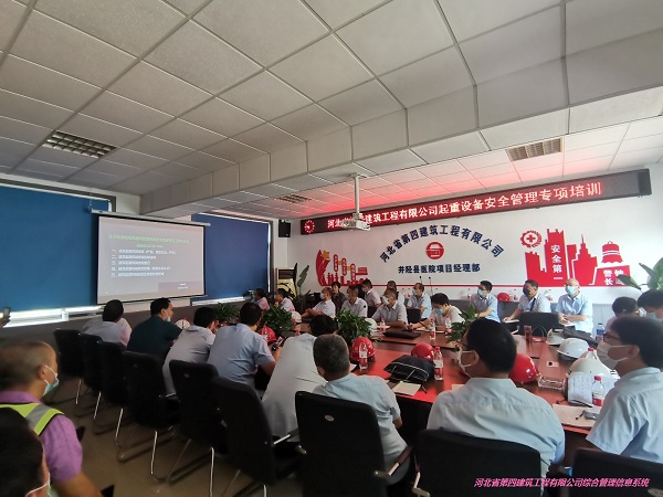 730午,公司建筑起重机械设备安全管理专项培训在二分公司井陉县医院项目举行,各公司安全管理人员、设备安全负责人40参加培训。